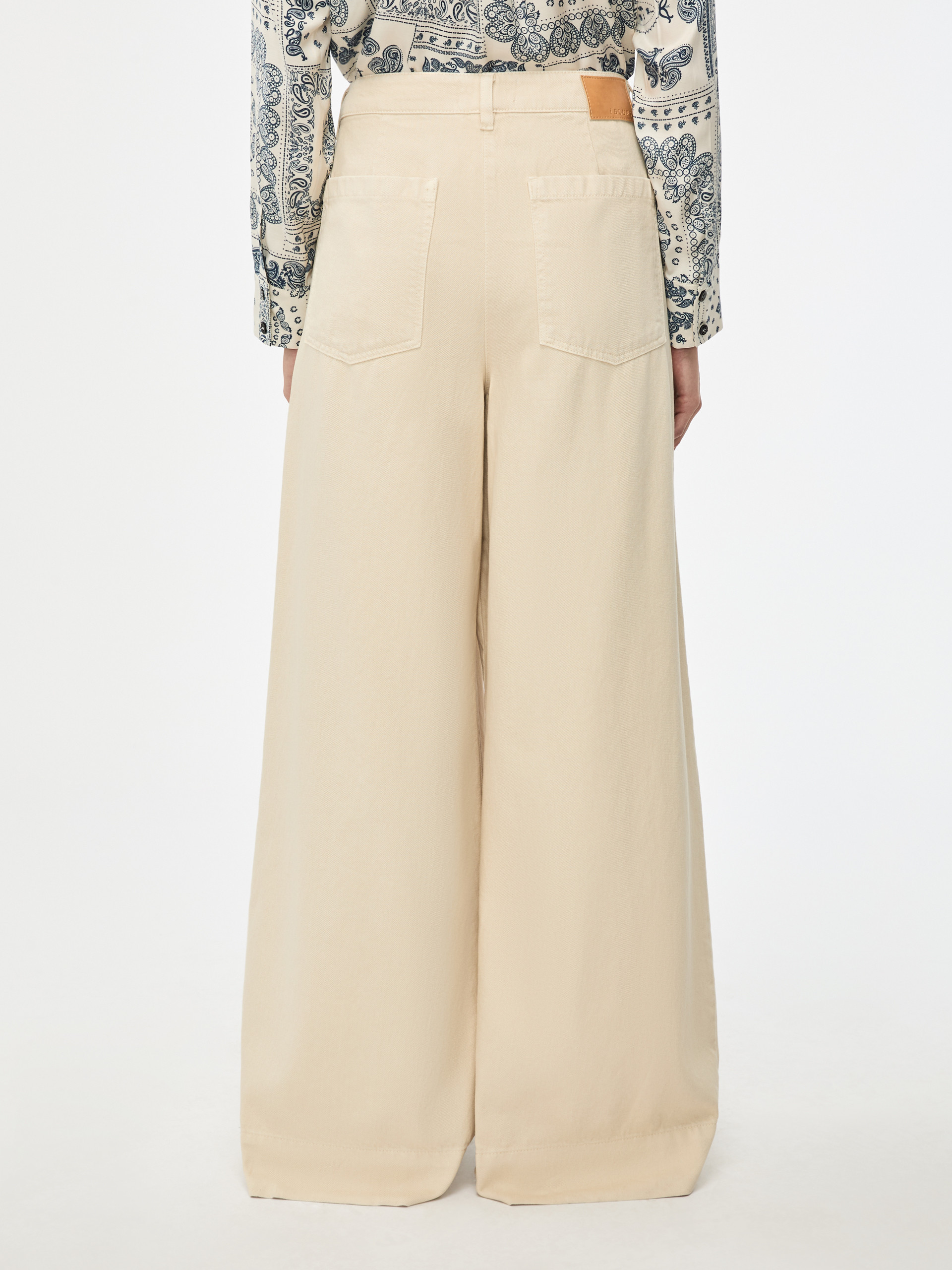 • Wide-leg cut with front darts